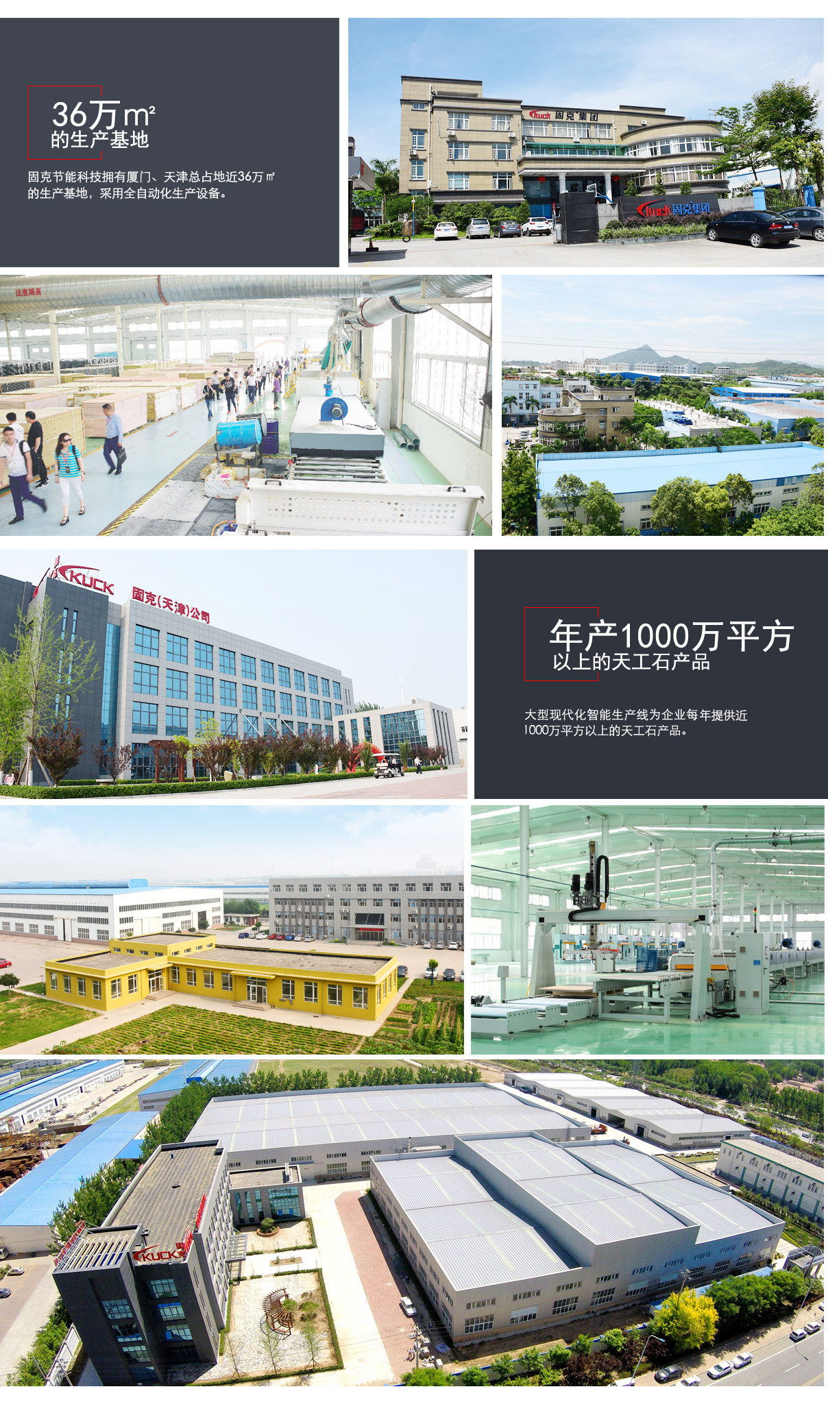 面對中國生態城鎮化與城市舊房節能改造的巨大需求,固克引領行業領先的節能技術,以打造綠色生態人居為企業戰略目標,提出了“以新型墻板取代天然石材、以節能涂料取代瓷磚”的墻體節能減排理念,并在廈門和天津建造了兩大節能生產基地。